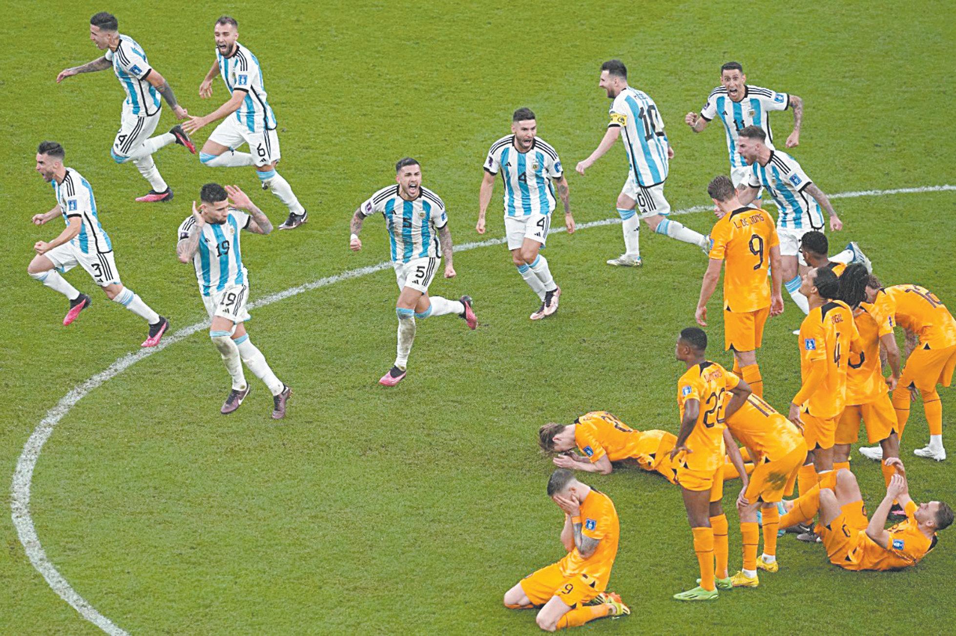 gentina en los penales (4-3 tras empate 2-2) fue especialmente tenso y el árbitro del mismo, el español Mateu Lahoz, mostró quince tarjetas amarillas (ocho a los argentinos y siete a los neerlandeses), así como una roja a Denzel Dumfries durante la tanda de penales.