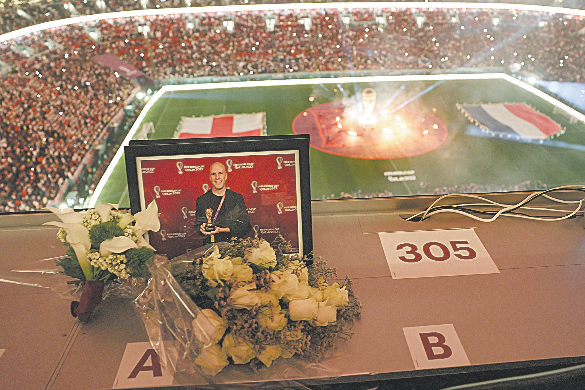 QATAR.- Ayer, la FIFA rindió homenaje al periodista Grant Wahl colocando una placa conmemorativa con su foto en el lugar que debería haber ocupado en la tribuna de prensa durante el partido de cuartos de final Francia-Inglaterra.
