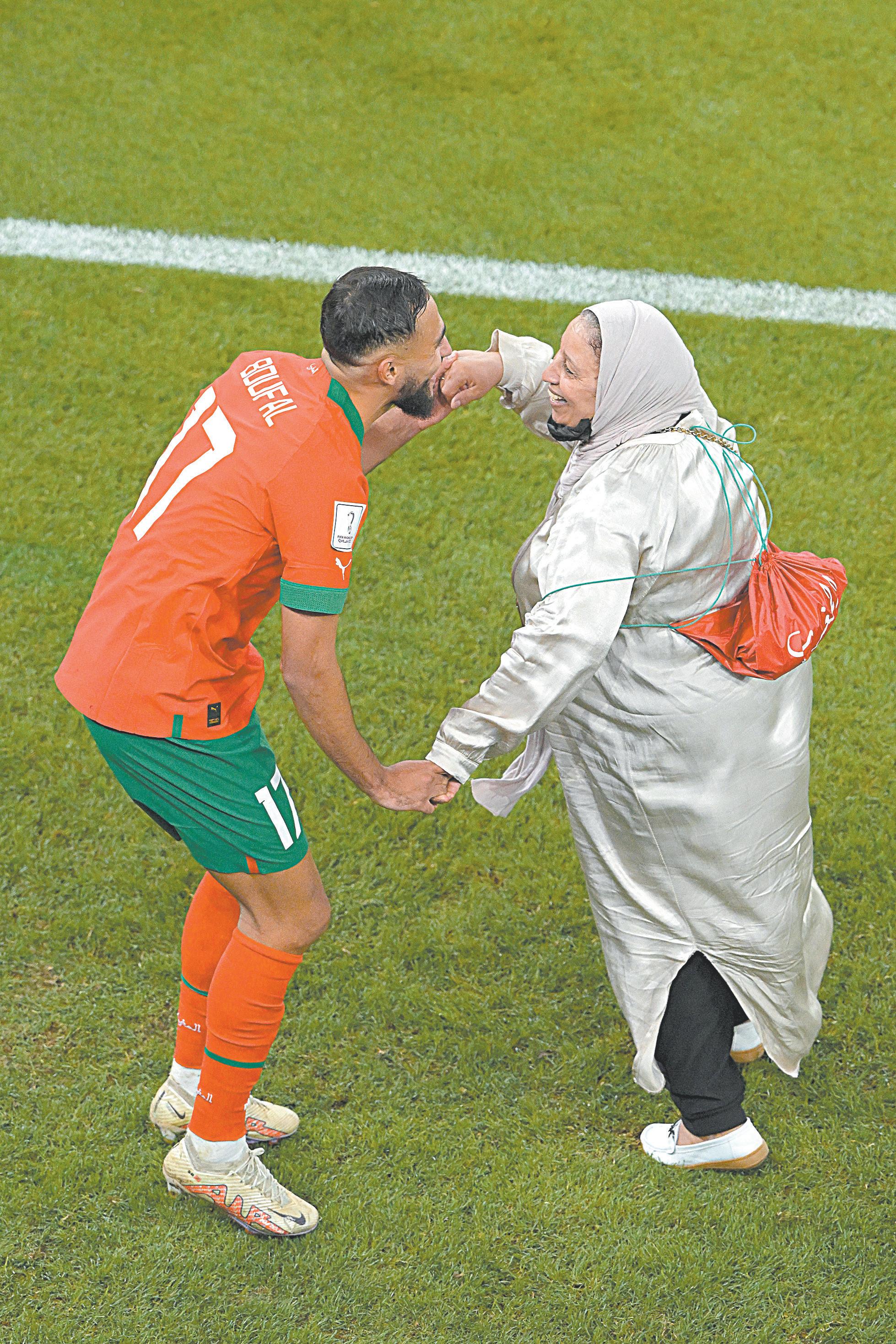 El Mundial de Qatar ha dejado muchas sorpresas, pero pocas veces se han visto sucesos emotivos que dejen huella, como lo ocurrido después del silbatazo final en el estadio Al Thumama, donde una de las figuras del combinado marroquí, Sofiane Boufal, corrió a celebrar con una sonriente madre, que después de brindarle el abrazo y el beso más sincero a su triunfador hijo, sujetaron sus manos para continuar el festejo con un pequeño y discreto baile.