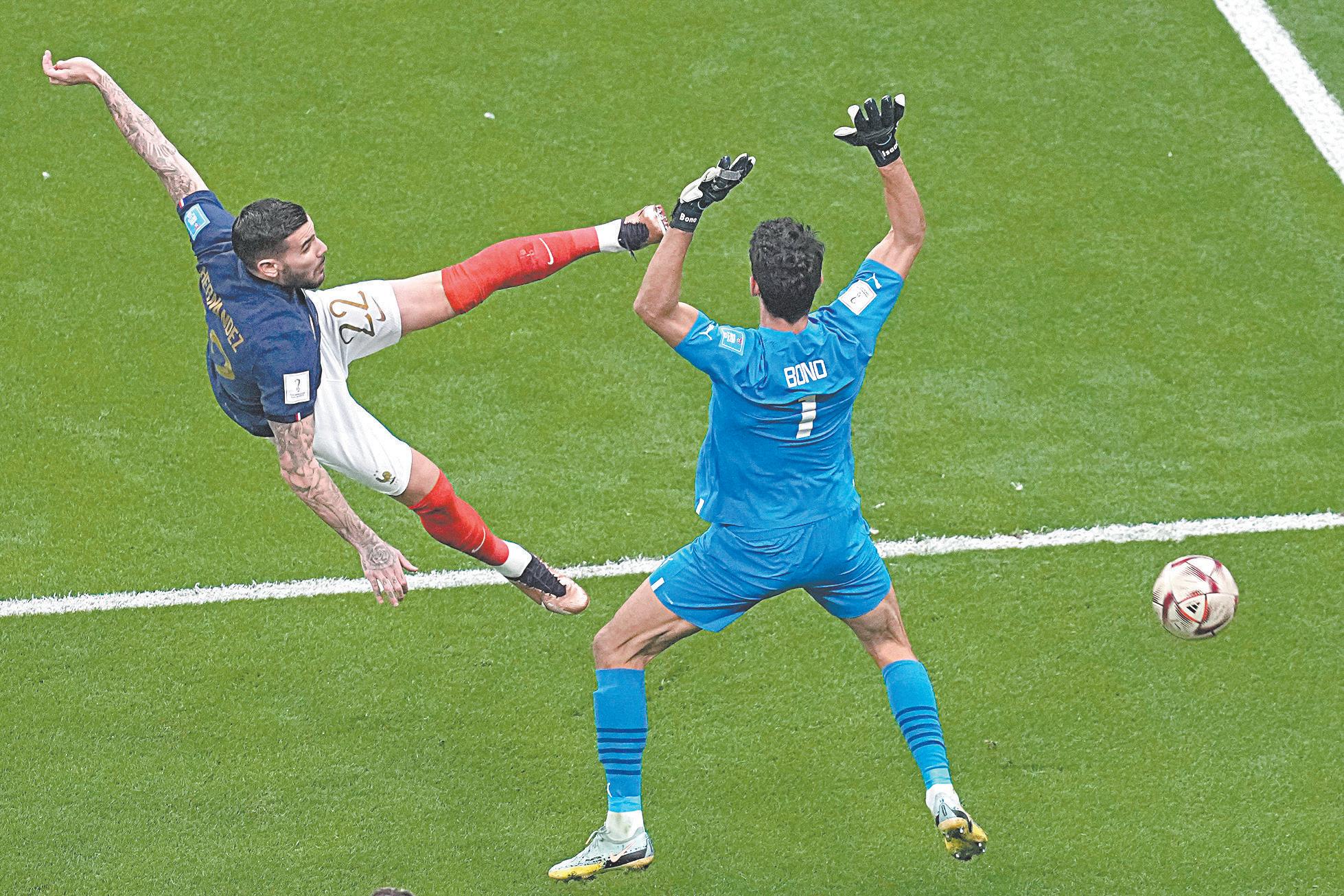 El lateral izquierdo Theo Hernández destrabó muy temprano, con un zurdazo en el minuto 5, un juego que se preveía cerrado entre uno de los ataques más prolíficos de la competición, Francia (12 goles), y la defensa menos vulnerada del certamen, Marruecos (3).