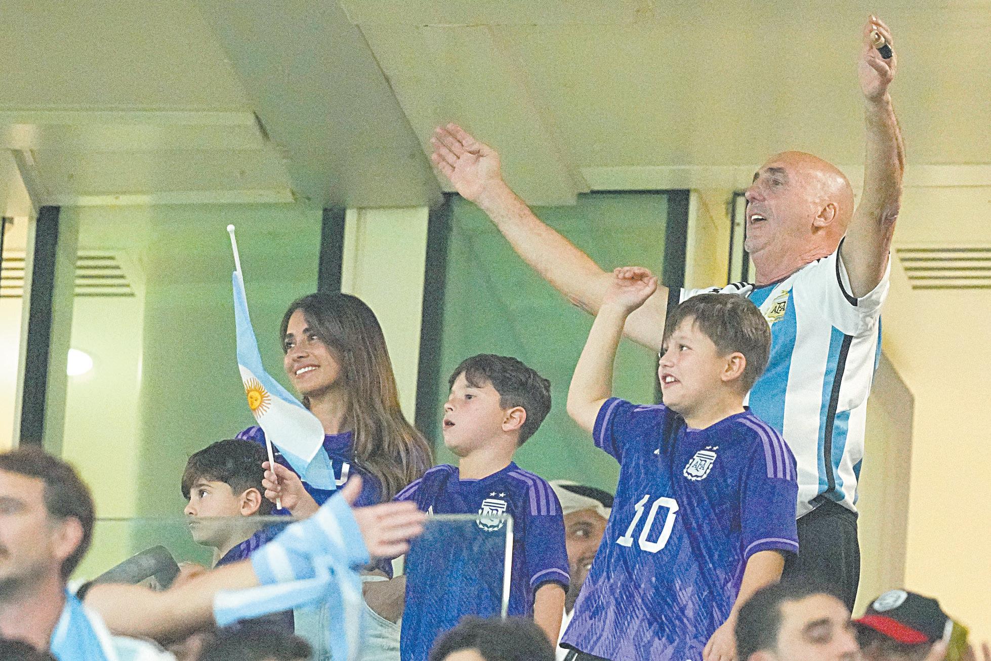 La familia del astro del PSG se dio cita en el estadio Al Rayyan.