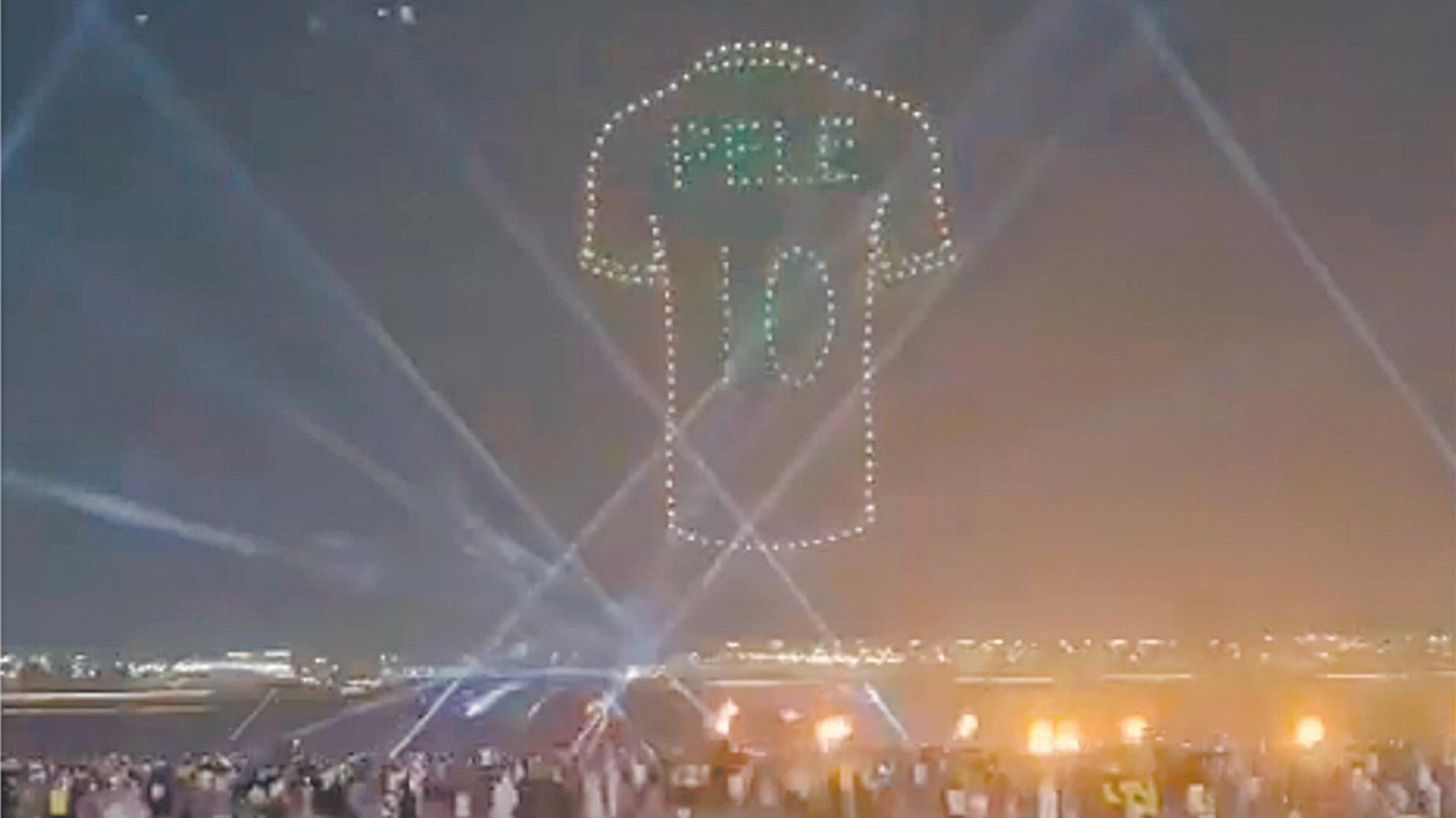 QATAR.- Una coreogra fía con unos 150 drones rindió un homenaje en el cielo de Doha al exfutbo lista brasileño Pelé, que se encuentra hospitalizado desde hace varios días. Tras dibujar la camiseta con el 10 que vestía O Rei, los aparatos, suspen didos en la noche cata rí, escribieron la frase: “Pelé, recupérate pronto”. En varios edificios del país, donde se disputa el Mundial de futbol, se colgaron carteles con el rostro del exjugador. El mundo del futbol se ha volcado con la estre lla brasileña, de 82 años, con numerosas mues tras de apoyo y cariño. El delantero francés Kylian Mbappé pidió a través de las redes sociales una oración por su admi rado Pelé, mientras que el atacante inglés Harry Kane le envió en rueda de pren sa “los mejores deseos”. Pelé fue ingresado en un centro hospitalario el pasa