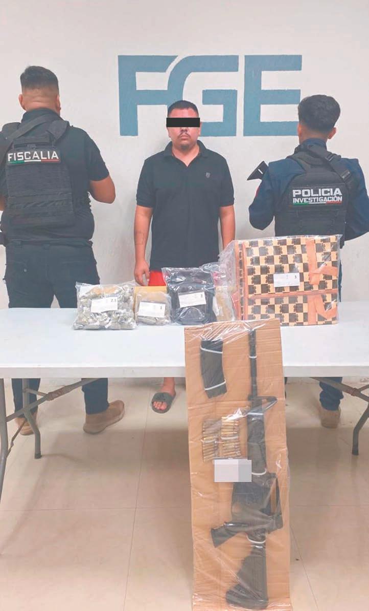tres fusiles AK-47, un fusil J.C. Higgins, un aditamento lanzagranadas calibre 40 mm, 12 cargadores calibre 5.56X 223, siete chalecos tácticos y casi 3 mil cartuchos útiles de diversos calibres, todo lo asegurado fue turnado a la Fiscalía General de la República (FGR) para que investigue la propiedad.