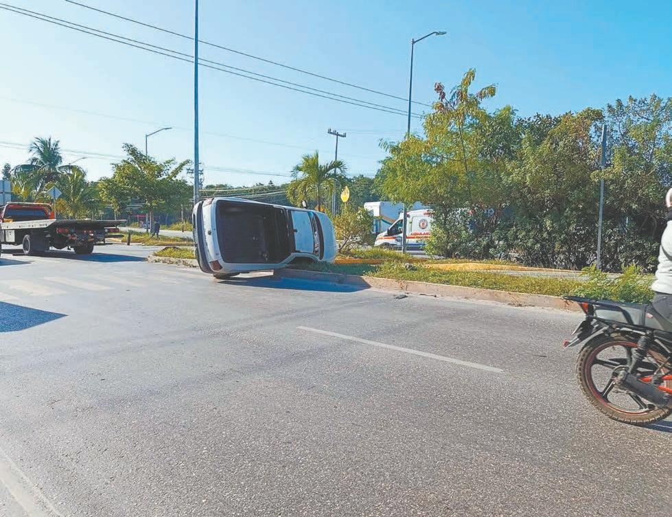 Conductor ebrio entra con su camioneta a un restaurante de la avenida Kabah Policía 25