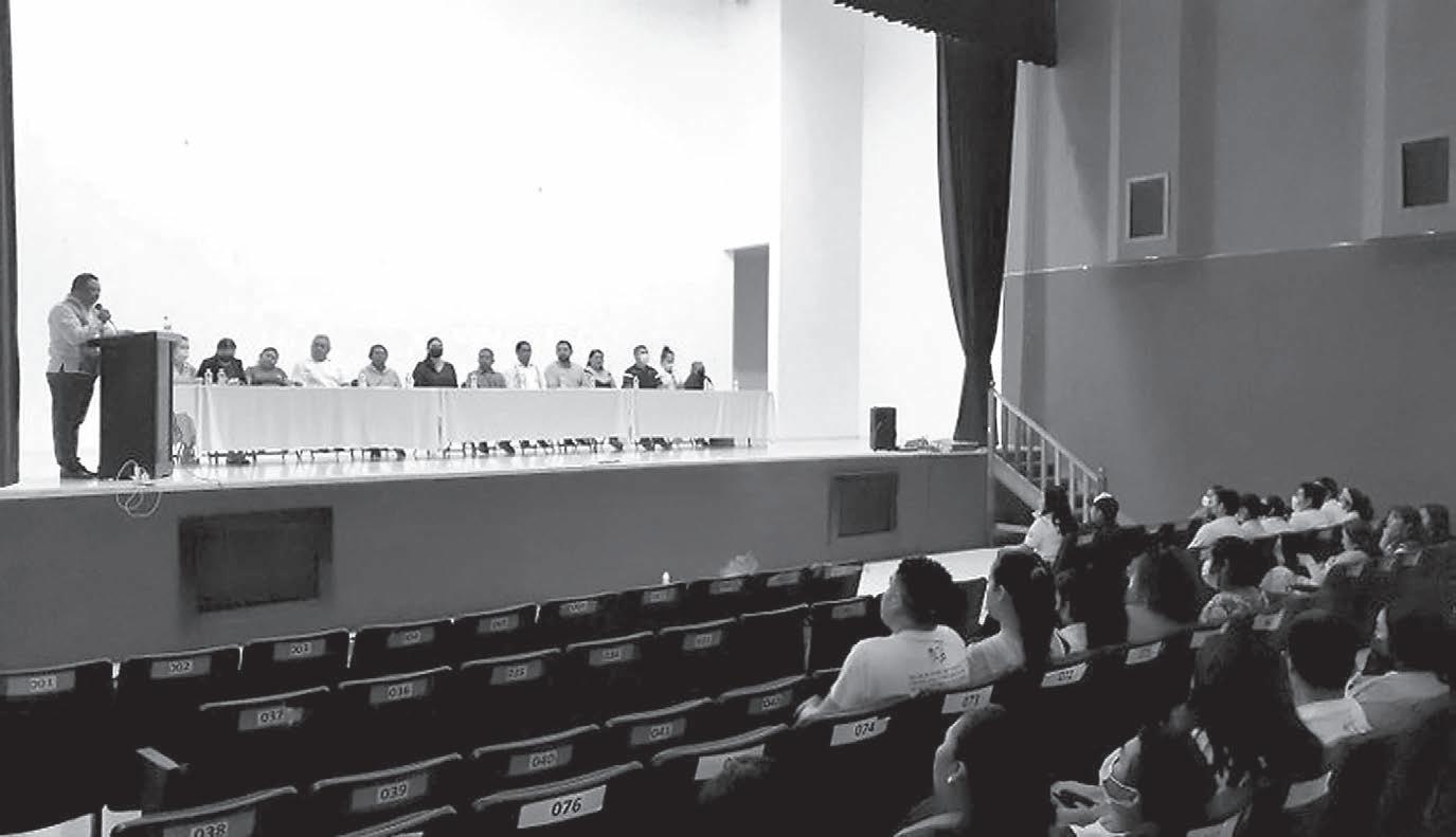 de la Dirección de Gobernación del distrito de San Felipe Orizat lán, el mismo alcalde municipal de Yahualica, Elías Sanjuán Sánchez; también las autoridades delegacio nales de la comunidad de Mecatlán y el coordinador del Cobaeh en la región de La Huasteca, Clemente Salazar Olivares, dialogando con todos los padres de familia al inte rior de este centro educativo.