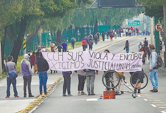 Poco después de las 14:20 horas los manifestantes -quienes previa mente habían tomado la dirección de su facultad- se colocaron sobre dicha vialidad enarbolando una manta con la frase “CCH Sur viola y encubre. Exigimos justicia”.