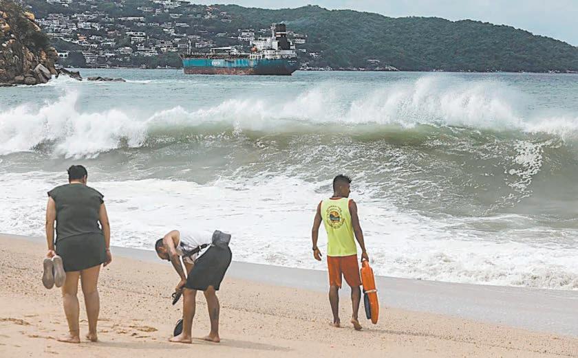 Sus extensas bandas nubosas mantendrán lluvias intensas (de 75 a 150 mm) en regiones de Coli ma, Guerrero y Michoacán, y muy fuertes (de 50 a 75 mm) en sitios de Jalisco, así como rachas de vien to de 60 a 80 kilómetros por hora (km/h) con oleaje de 3 a 5 metros (m) de altura en las costas de Coli ma, Jalisco y Michoacán, y rachas de 50 a 60 km/h y oleaje de 1 a 3 m de altura en el litoral de Guerrero.