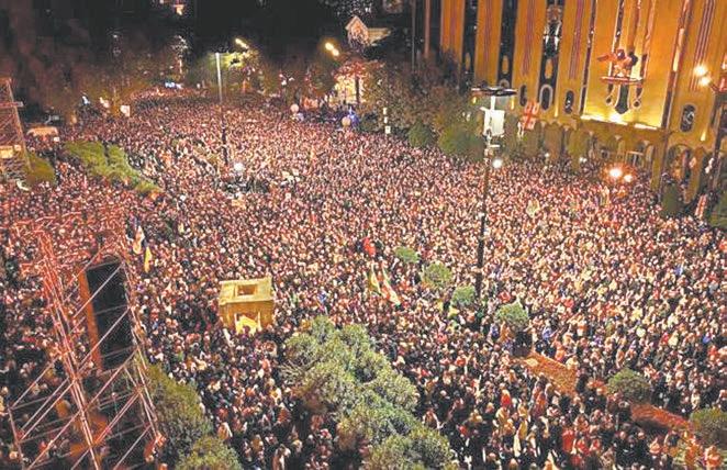 Zourabichvili dijo a la multitud que “es necesario tener un panora ma completo de cómo tuvo lugar este robo masivo y sistemático de votos”, y añadió que se trata de una “operación planificada pre viamente y sin precedentes que nos robó nuestros votos, nuestro Parlamento y nuestra Constitu-