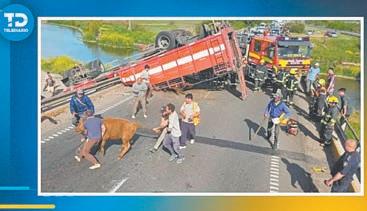 SE VUELCA UN CAMIÓN CON VACAS Y VECINOS LAS ROBAN