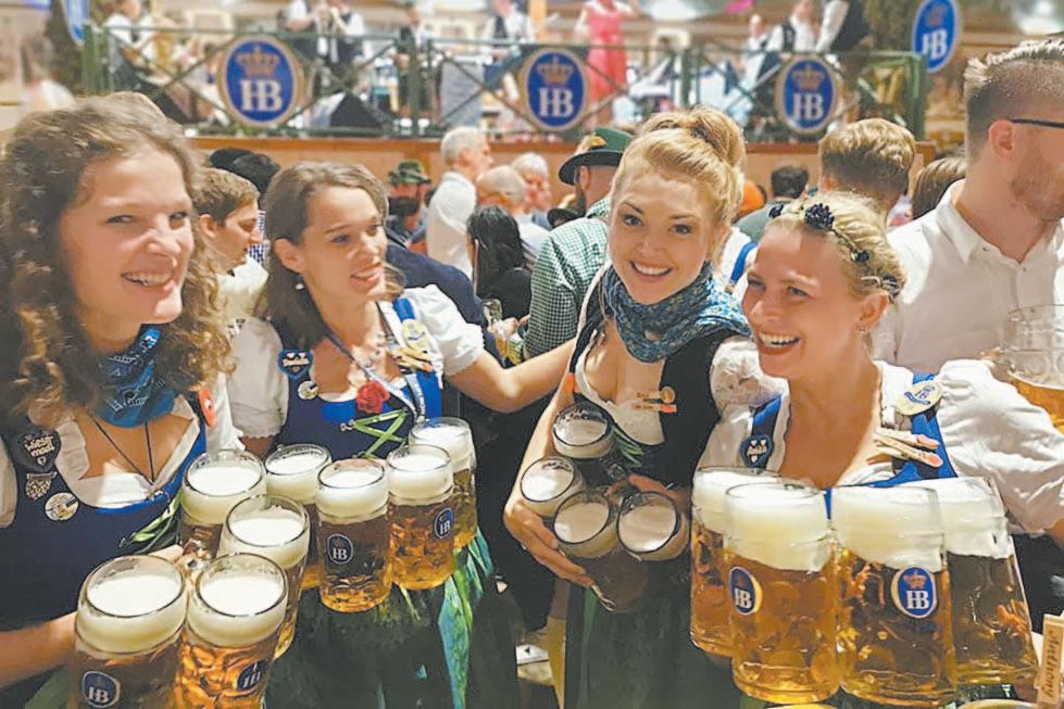 Las meseras comenzaron de inmediato a llevar jarras, cada una con hasta ocho tarros de vidrio, hacia las mesas. Los juerguistas chocaron sus tarros y bebieron grandes tragos de cerveza ante el calor sofocante de la carpa. La celebración se prolongará hasta el 6 de octubre en 18 grandes carpas que cubren el recinto ferial de Theresienwiese.