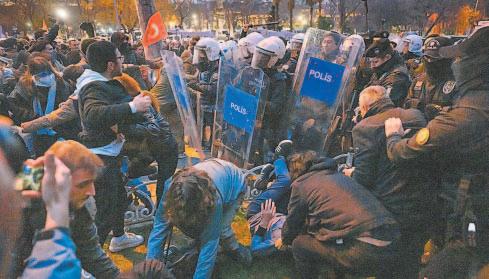 figuras prominentes, incluidos dos alcaldes de distrito, también fueron detenidos. La manifestación se realizó, a pesar de que se prohibieron las manifestaciones durante cuatro días y se cerraron calles. Estudiantes universitarios en Estambul y la capital, Ankara, realizaron ayer manifestaciones para protestar contra la detención, bajo una fuerte presencia policial. Frente al Ayuntamiento de Estambul, la Policía bloqueó a un grupo de jóvenes que intentaron romper una barricada en un esfuerzo por marchar hacia Taksim, la plaza central de la ciudad. (Agencias)