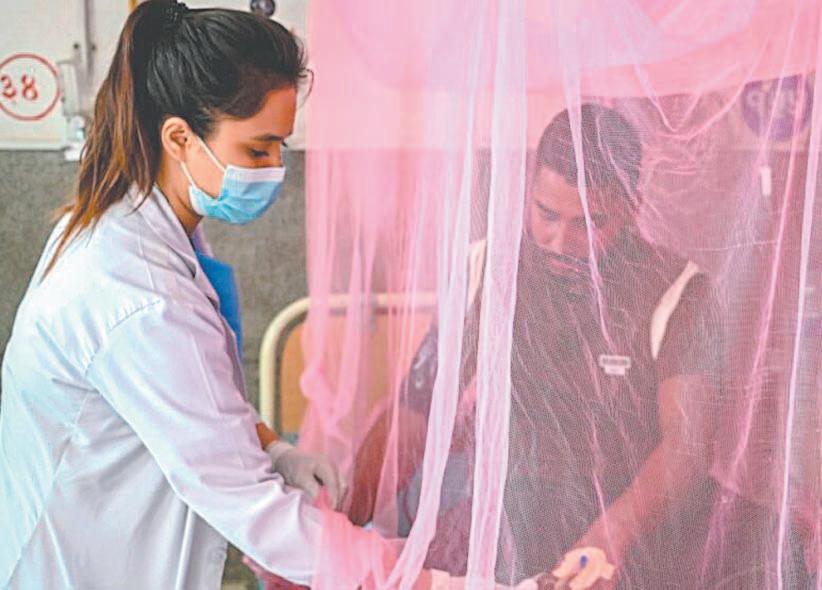 En algunos distritos, los hospitales están repletos de pacientes de dengue que sufren fiebres debilitantes, dolores corporales y erupciones.