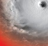 Los científi cos sostienen que el cambio climático probablemente juega un papel en la rápida intensificación de los huracanes, porque superficies oceánicas más cálidas liberan más vapor de agua, lo que les proporciona a las tormentas más energía y, en conse-
