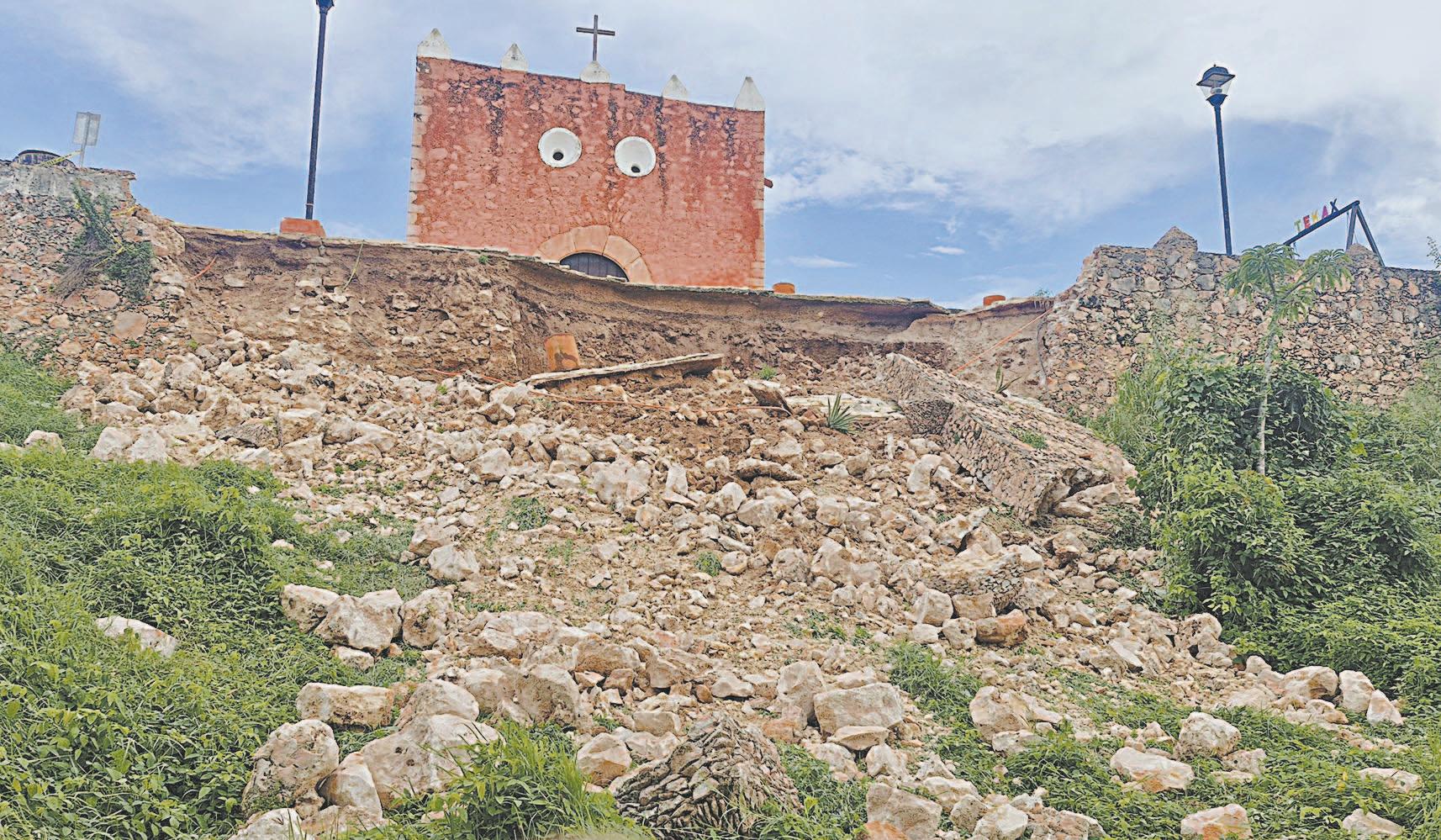 Colapsa parte de la barda de la Ermita de Tekax