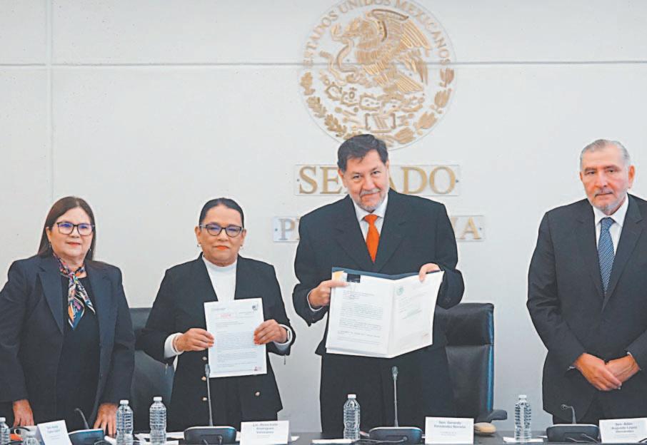 La serie de iniciativas de la presidenta Claudia Sheinbaum Pardo dirigidas al Senado de la República fueron recibidas ayer por Gerardo Fernández Noroña, presidente de la mesa directiva de la Cámara Alta.