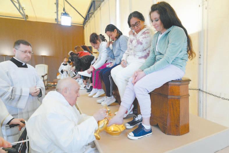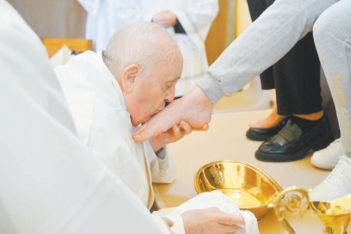 El Papa Francisco, que ya visitaba a presos en Buenos Aires, destacó que el lavatorio de los pies “es un gesto que nos llama a servir a los demás”. En la tradición cristiana, el Jueves Santo conmemora cómo Jesús lavó los pies de los Apósto- les en la Última Cena antes de la crucifixión. El ritual fue perpetuado en el cristianismo, excepto en algunas ramas del protestantismo. Anteriormente, los Papas lavaban los pies de hombres en una basílica romana. Francisco revolucionó el rito, desde su primer Jueves Santo en el 2013, al incluir a mujeres y