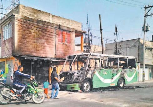 Integrantes de una organización delictiva autodenominada La Maña balearon una unidad de transporte público, a la que también le prendieron fuego en la colonia Juan Zapotla , ubicada en el municipio de Chimalhuacán, porque el dirigente de la ruta se negó a pagar una cantidad de dinero que le exigieron para no hacerle daño a él, a su familia y a los operadores de la línea.