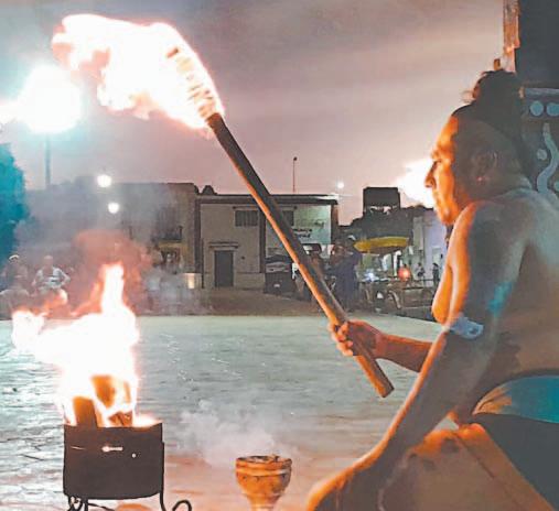 OFRECEN ritual a los Dioses Mayas de los cuatro puntos cardinales y purifican el campo con humo de copal para jugar Pok Ta’ Pok.- (E. Caamal)