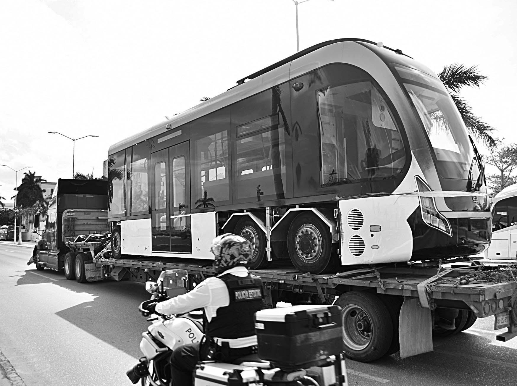 UNA Unidad Bus DRT Bi Articulada, procedente de Monterrey, Nuevo León, es la que se utilizará en los ensayos. Este nuevo transporte servirá para conectar el primer cuadro de la Ciudad con el Aeropuerto y la estación del Tren Maya.- (Alan Gómez)
