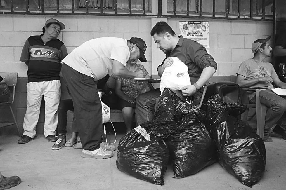 Lorenza Obdulia, directora del albergue Todo por Ellos , en coordinación con el Centro de Dignifi cación Humana (CDH), ha liderado la entrega de alimentos, especialmente destinados a mujeres y niños que buscan