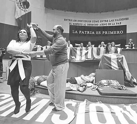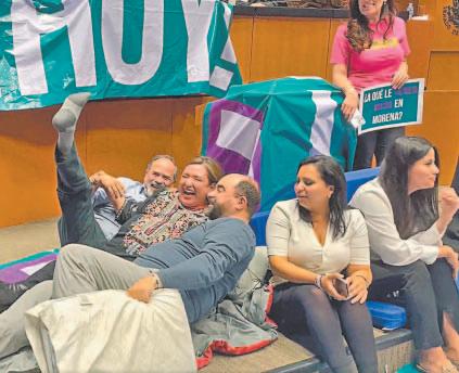 A través de un comunicado, acusó que “la minoría legislativa”, como la senadora y aspirante presidencial Xóchitl Gálvez y otros legisladores de oposición, prefirieron organizar bailes, pijamadas y encadenarse a la silla de una mesa, en vez de debatir los proyectos de leyes materia de la sesión. Cabe señalar que el comunicado viene acompañado por una foto de las manifestaciones hechas por Xóchitl Gálvez.