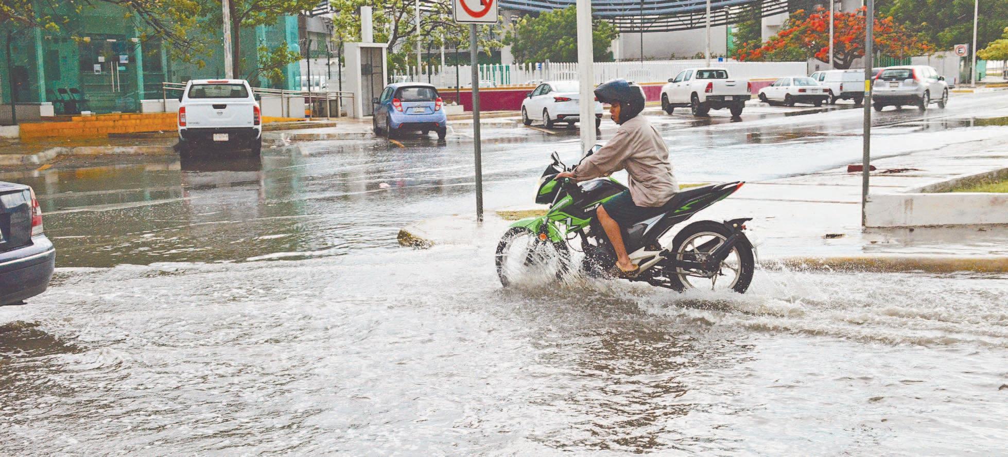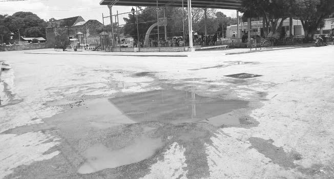 LAS anegaciones afectan al Centro de la comunidad, ya que es donde se acumula la mayor cantidad de agua durante las lluvias.- (Amado Caamal)