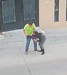 Aparentemente ella no se da cuenta de que la sigue, hasta que el sujeto la alcanza. Instantes después, aparecen de nuevo ambos en el video, él sujetándola por el brazo y ella tratando de soltarse.