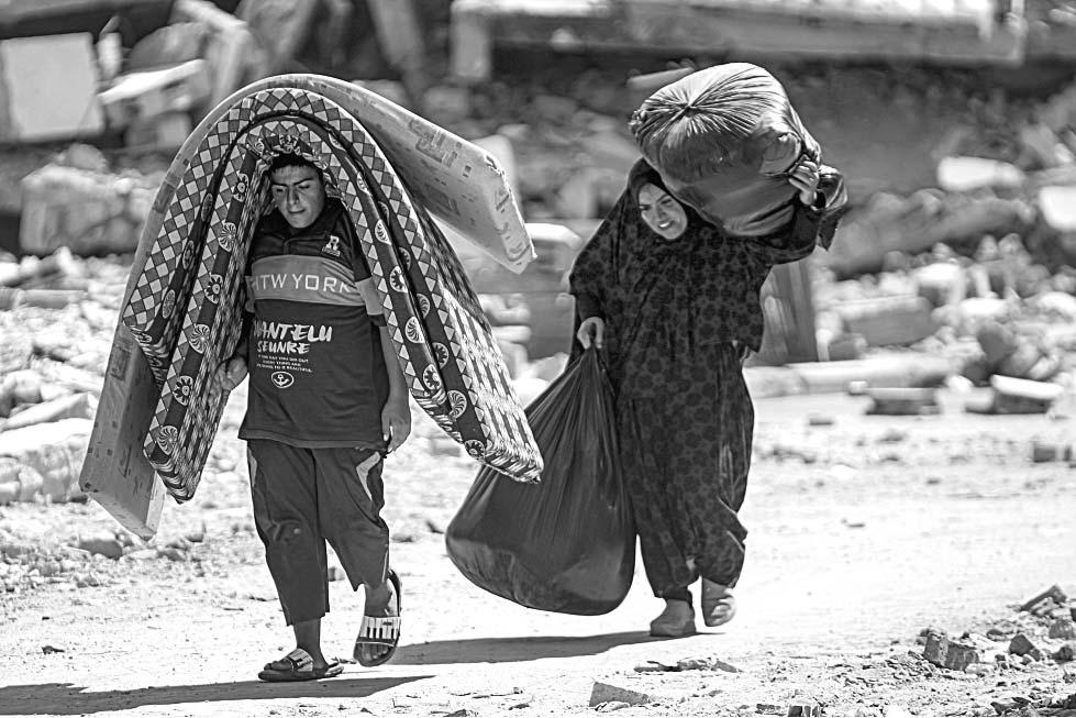 Ayer, familias salieron apresuradamente de la zona de Al Jalaa, a pie o en camionetas cargadas con colchones, ropa o utensilios de cocina.
