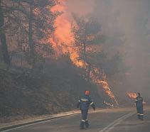 Un incendio forestal ardía ayer al Noreste de Atenas, oscureciendo el cielo mientras el olor a humo y hollín invadía la capital griega. Más de 400 bomberos, 110 camiones de bomberos y un gran número de voluntarios luchaban contra las llamas, que se declararon alrededor de las 3 de la tarde a unos 35 kilómetros de Atenas. Los 15 aviones de extinción de incendios y nueve helicópteros estaban operando a última hora de la tarde, pero dejaron de funcionar al atardecer.