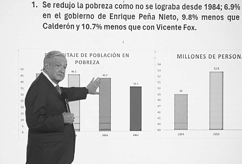 El presidente Andrés Manuel López Obrador celebró ayer la reducción “histórica” de la pobreza que reveló el informe presentado por el Consejo Nacional de Evaluación de la Política de Desarrollo Social (Coneval), el cual mostró que 8.9 millones de mexicanos dejaron de ser pobres de 2020 a 2022, es decir, la población en situación de pobreza pasó de 55.7 millones de personas a 46.8.
