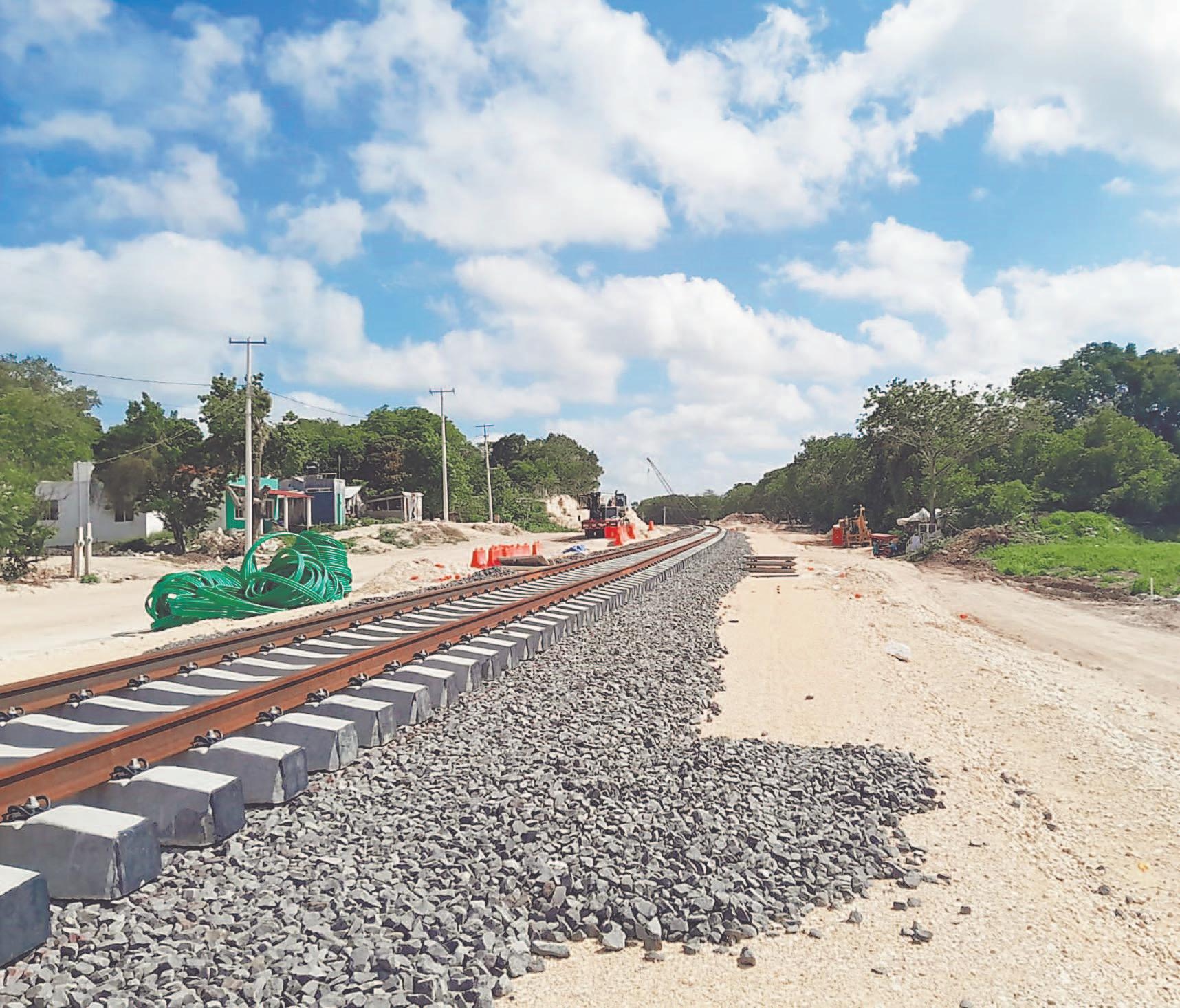 EN la parte del Tramo 2 Escárcega–Calkiní, que comprende la colonia rural La Chiquita, los rieles están instalados y listos para ser utilizados; la obra lleva un avance del 90 por ciento, ya que se trabaja en la terminación del paso elevado (recuadro).- (J. Guevara)