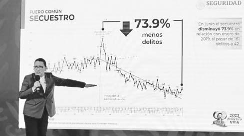 Al presentar el Informe Mensual de Seguridad en la conferencia matutina del presidente Andrés Manuel López Obrador, la funcionaria federal destacó que, durante este Gobierno, el homicidio do-