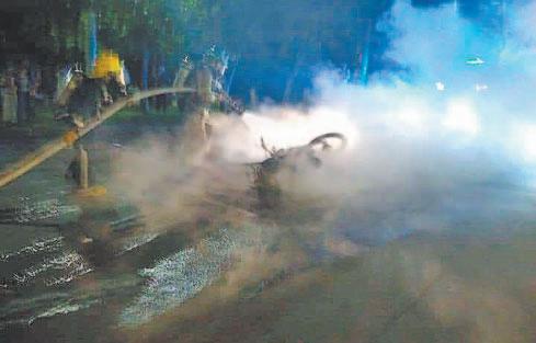 Según la Policía, el camión cisterna transportaba cientos de litros de gasolina. Sin embargo, se informó que el incendio estaba controlado.