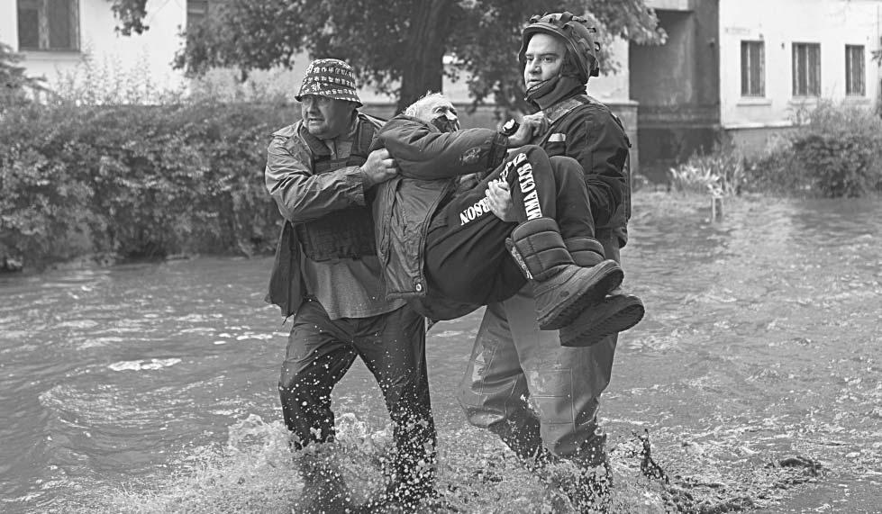 Desde entonces, muchas embarcaciones pequeñas han salido desde zonas bajo control ucraniano, en la margen Occidental del río, para rescatar a civiles desesperados que se refugiaron en techos, áticos y otros lugares que permanecen secos en medio de la anegación.