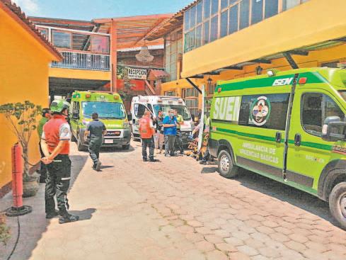 cuados lesionados en un hospital, uno de los cuales estaba cubierto de sangre y fue llevado en camilla hacia la sala de emergencias.