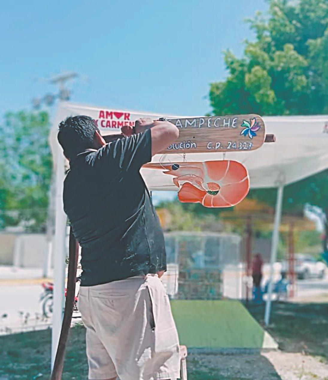 ROBOS y daños han sufrido los letreros realizados por artesanos de la Villa para ofrecer un atractivo turístico, que dé identidad.- (Gerardo Can)