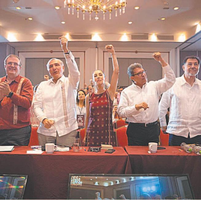 En ese sentido, la jefa de Gobierno de la Ciudad de México, Claudia Sheinbaum Pardo; el canciller, Marcelo Ebrard Casaubon; el secretario de Gobernación, Adán Augusto López Hernández, y el coordinador de senadores de Morena, Ricardo Monreal Ávila, firmaron el acuerdo que da inicio al proceso de elección.