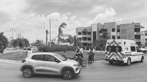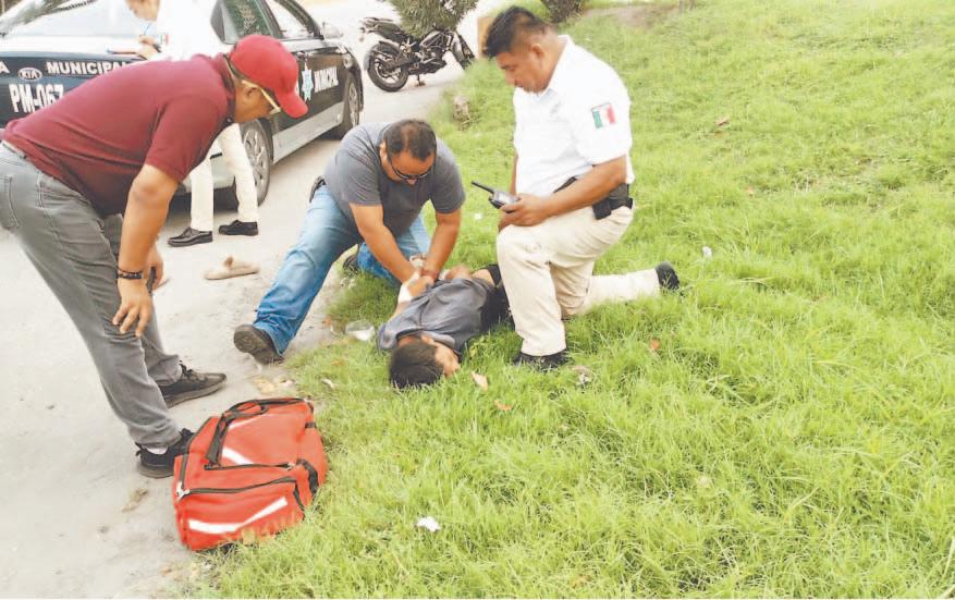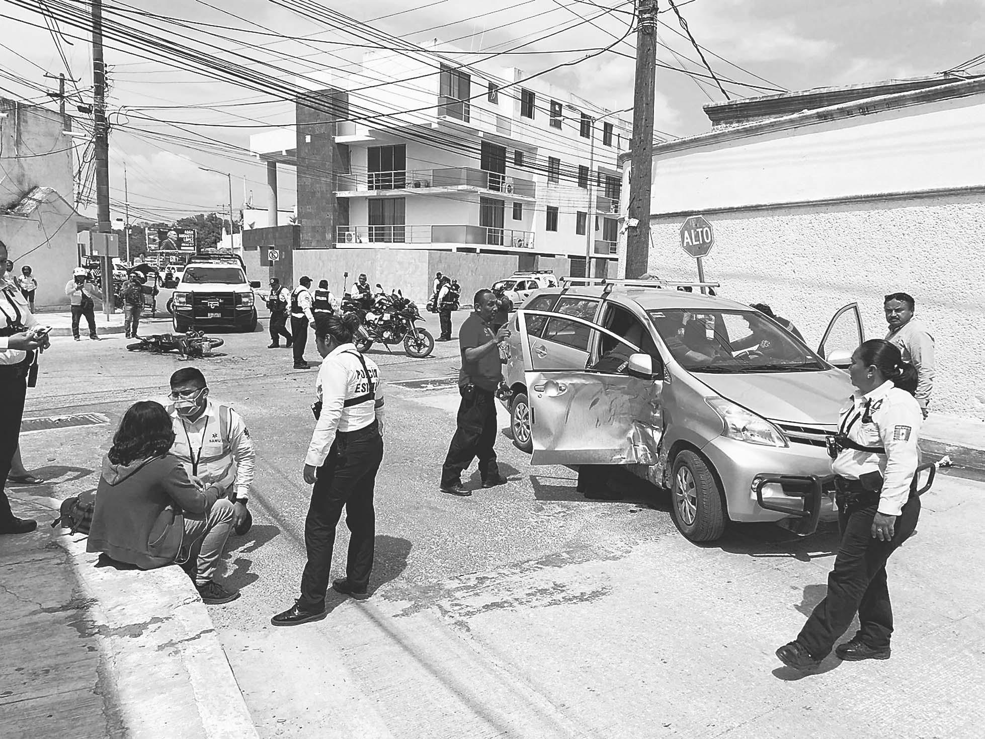 CON heridas graves en el rostro resultó un joven tras impactarse contra el costado del automóvil que se le atravesó; destruyó su moto.- (D. Herrera)