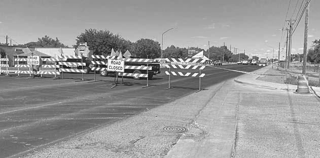 La Policía de Los Lunas dijo que el puente Main Street, sobre el Río Grande, seguía cerrado debido al hueco bajo una acera en el lado Este del puente.