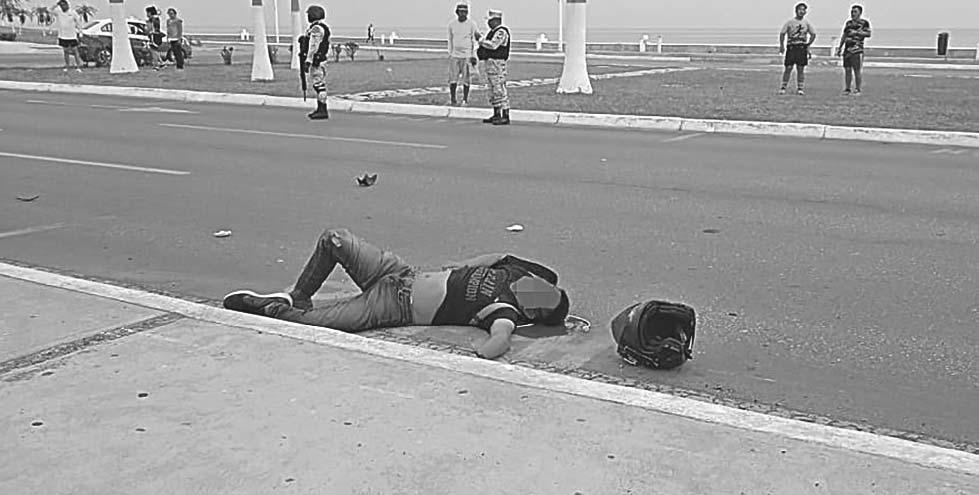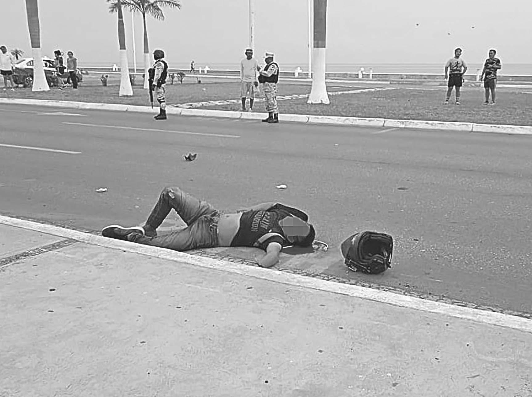 EL joven quedó tendido en el asfalto después de impactarse contra el camellón central y volar por los aires varios metros.- (L. Blanco)