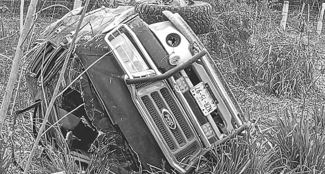 LA unidad de la Sedena terminó volteada y fuera de la vía, en un accidente registrado entre La Libertad y Lechugal.- (J. Guevara)