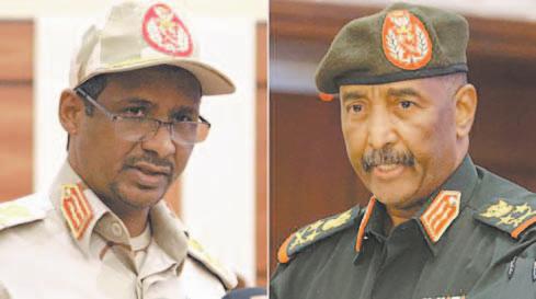 general Abdel Fatah al Burham, con su número dos, el general rebelde Mohamed Hamdan Dagalo, conocido como Hemedti, comandante de las Fuerzas de Apoyo Rápido (RSF), que juntos expulsaron a los civiles del poder en un golpe de Estado en el 2021.