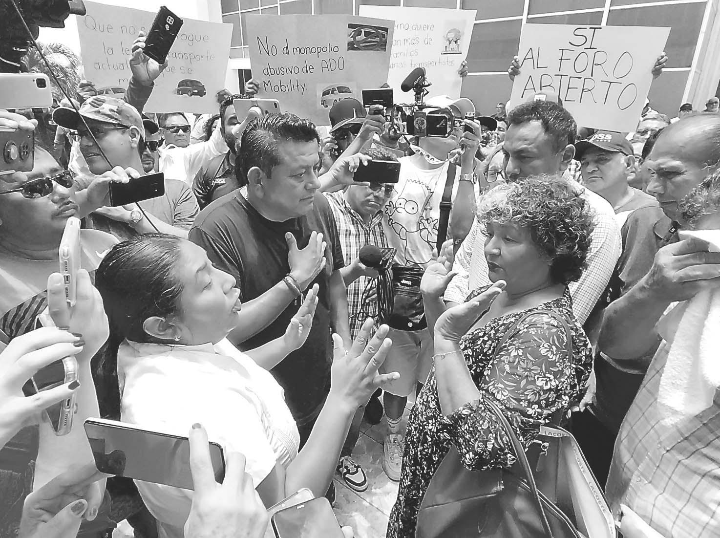 Alrededor de 150 concesionarios de Campeche, Calakmul, Escárcega y Carmen, se manifestaron por la negativa de los diputados de realizar un parlamento abierto por el tema del transporte público; la ley se aprobaría en la sesión del próximo viernes.- (A. Gómez)