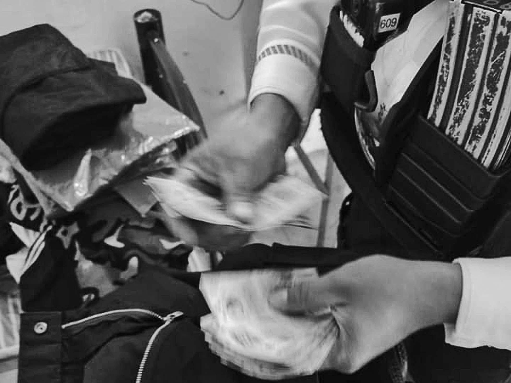 un hombre con pequeños paquetes de aparente droga. Cuando los oficiales intentaron realizarle una revisión, dicho sujeto se negó y comenzó a agredir a los