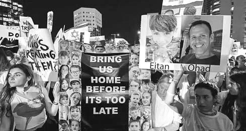 La presión sobre el Ejecutivo israelí también va en aumento a nivel interno. Ayer se celebró en Tel Aviv una nueva manifestación para reclamar un acuerdo. “La guerra no tiene ningún vencedor”, rezaba una de las pancartas que portaban los congregados. (Agencias)