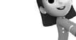 La obra representa a un hombre con rasgos de gárgola, de ojos rojos, sentado con las piernas cruzadas.