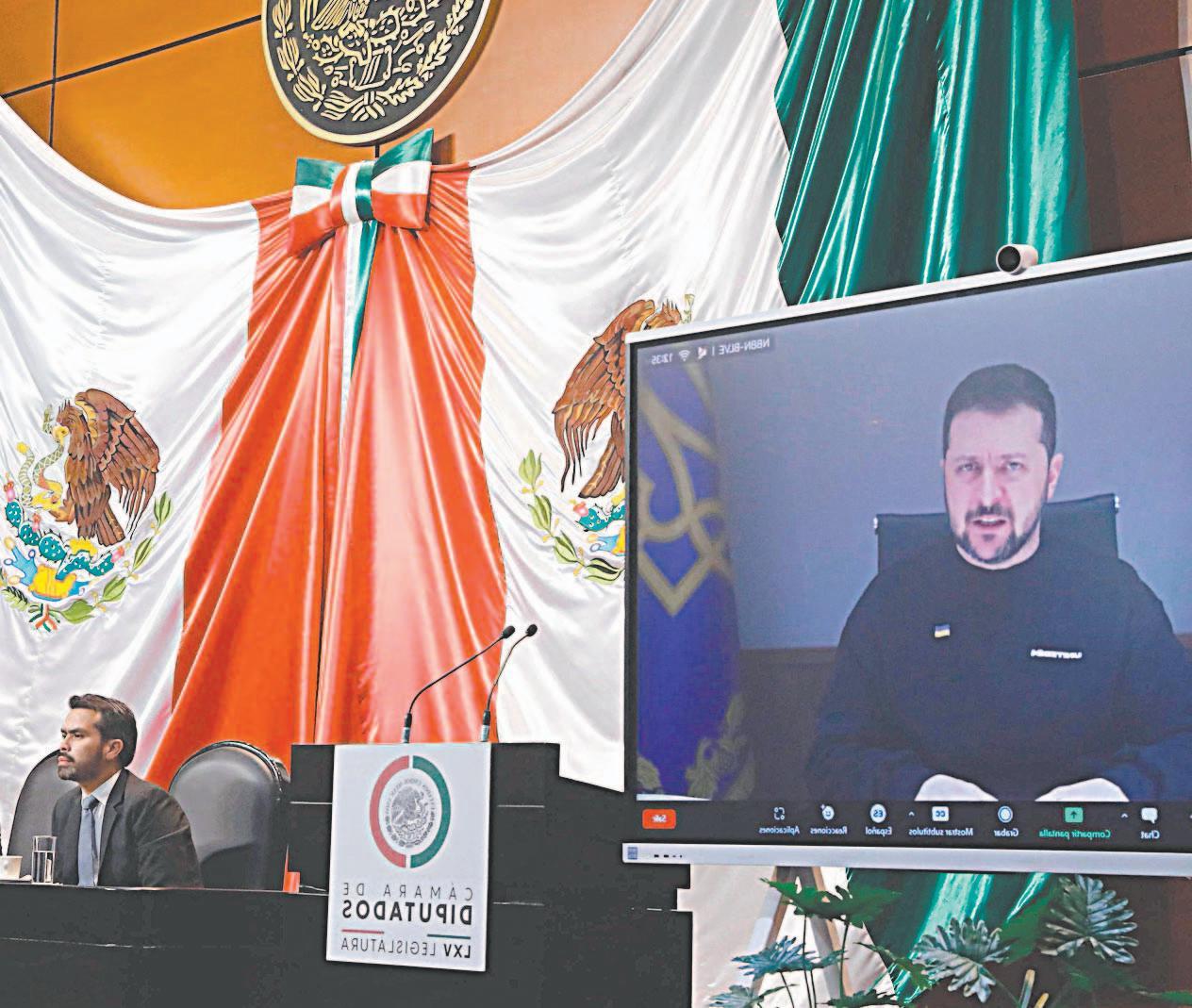 Ayer, Zelenski hizo una presentación a distancia ante el Grupo de Amistad México-Ucrania de la Cámara de Diputados, a la que acudieron legisladores de Movimiento Ciudadano, el PAN y algunos del PRI, en la que hizo un relato de los daños que la Federación Rusa ha causado al invadir a su país.
