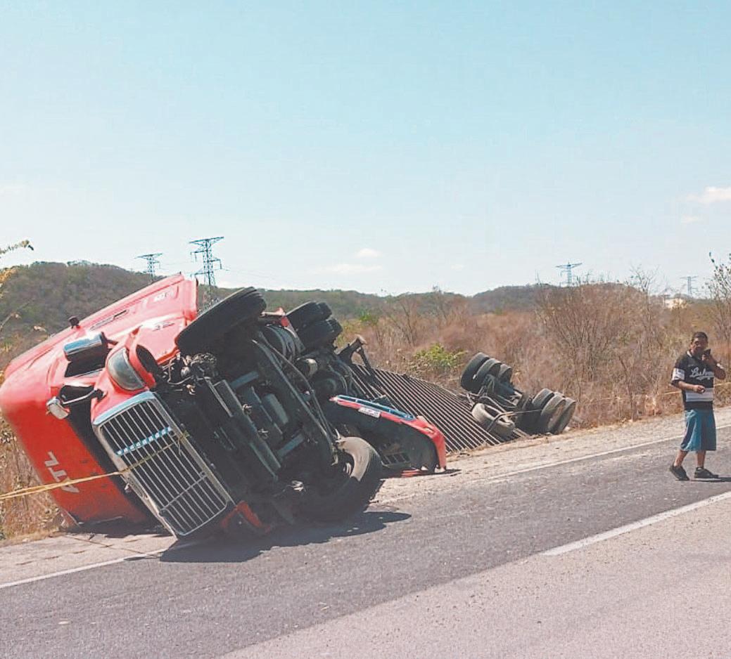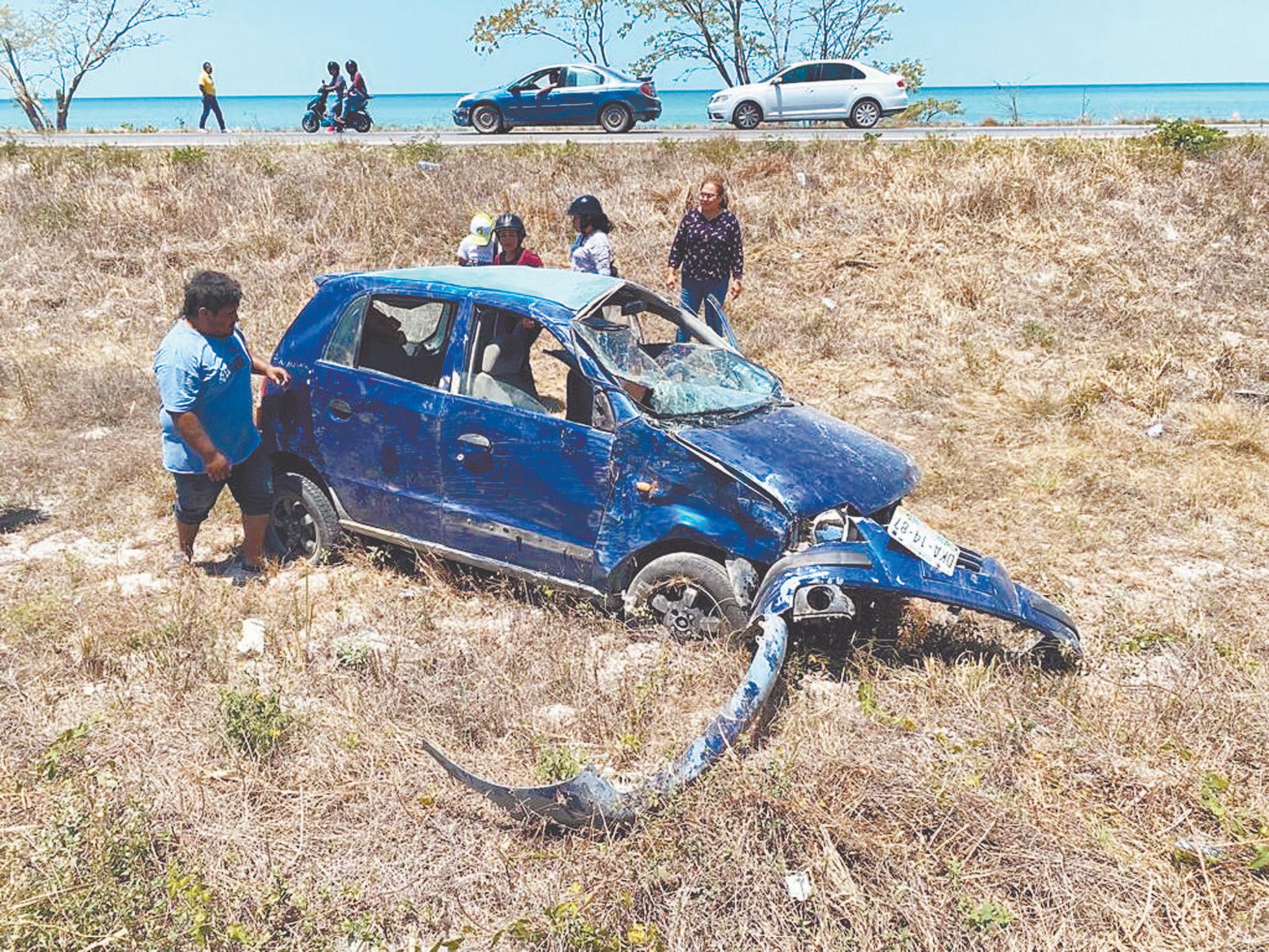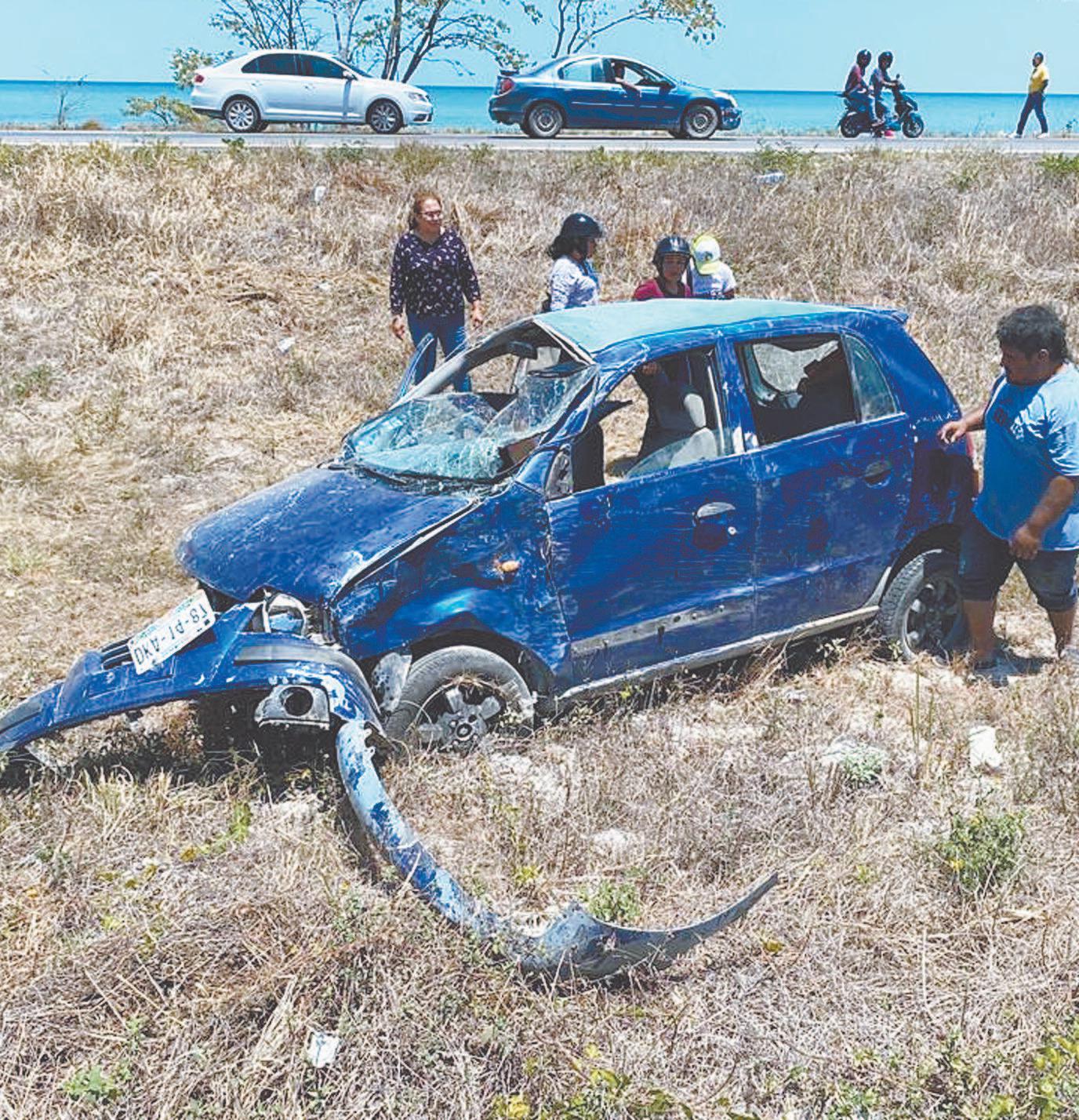 EL estallamiento de una llanta ocasionó que el vehículo volcara y derrapara varios metros antes de caer en una zanja.- (A. Rodríguez)