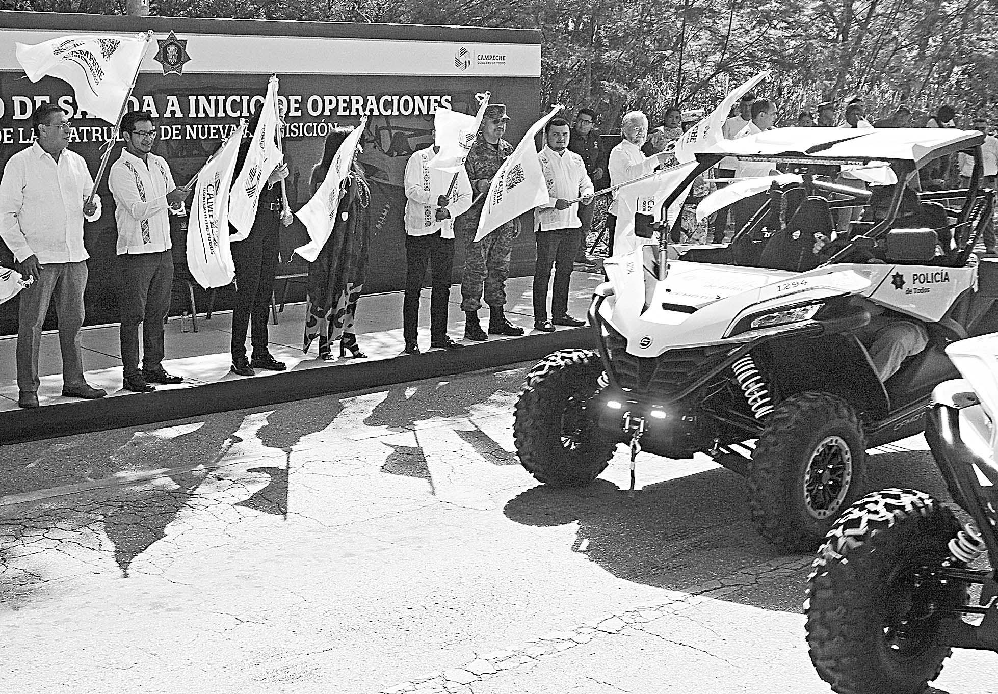 MÁS de 52 mdp fueron destinados para la adquisición de 68 patrullas tipo Sedán, 10 Razers para uso en comunidades y 38 motocicletas.- (L. Blanco)
