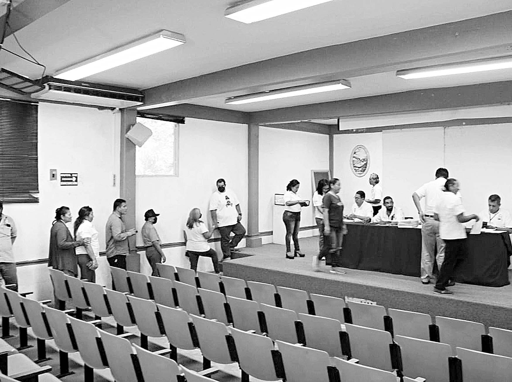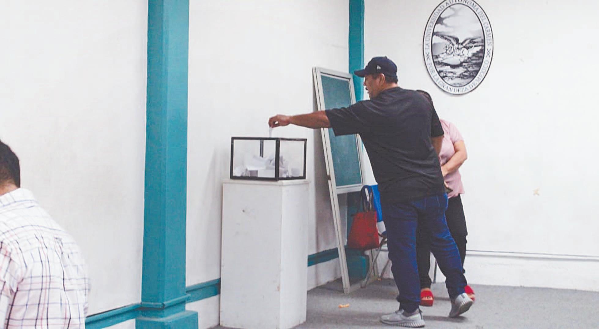 DESPUÉS de más de 5 horas de votaciones realizadas en las instalaciones de la Universidad Autónoma de Carmen, 228 personas descartaron el convenio firmado el pasado 27 de junio entre el Sutunacar y la Universidad, sobre 138 que se proclamaron a favor, de un total de 366 afiliados.- (R. Jiménez)
